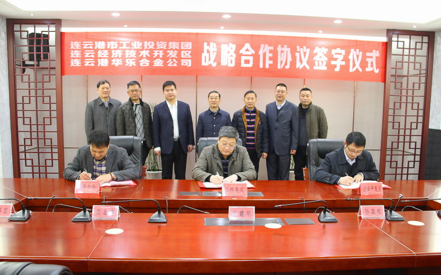 14日上午,集團公司與連云經濟開發區、連云港華樂合金公司舉行戰略合作協議簽約儀式,集團公司總經理胡建明、總會計師匡友本,連云區委常委、連云開發區黨工委書記張其兵,連云港華樂合金公司董事長陸大淦等出席簽約儀式。