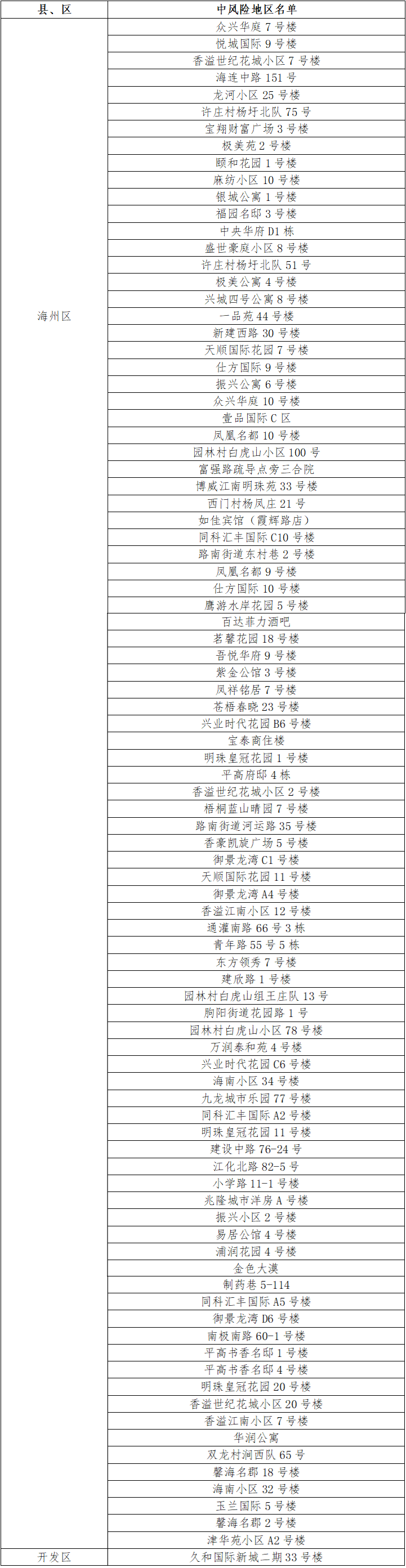 根據國務院聯防聯控機制有關規定,經市指揮部研究決定,自發布之日起,對我市部分區域疫情風險等級進行調整: