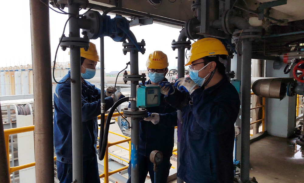 進入秋冬之際,突如其來的疫情打亂了公司正常的生產經營秩序,為統籌防疫工作并保障廠區正常生產運行,公司實施閉環管理,140余名員工留崗,保障裝置正常運行。設備管理部20名員工24小時堅守崗位,電氣員工克服天氣的不利因素,保質保量完成電氣預防性試驗工作;設備員工加強巡檢,對發現的安全隱患及時整改到位,確保各生產設備穩定運行;儀表員工完成氣動閥門氣動執行器修復,修理進料氣動開關閥等檢維修項目。氯化芐裝置經理楊飛將到崗的一線操作工分為3個班組,開啟三班兩運轉的生產模式,同時關注著產品的庫存和發貨趨勢,統籌安排生產的各項事務,保證了氯化芐裝置二期以每天75噸的產量高速運行,期間共生產化工產品1160余噸。倉儲中心小包裝班長蘇流生,工作作風務實,叉車技術過硬,作為唯一的一名留崗叉車司機,他每天需要完成包裝成品的轉運、苯甲醛成品的入庫、成品發貨裝車等工作,但他沒有任何怨言,為了及時完成各項工作,總是忙碌到最后一刻。