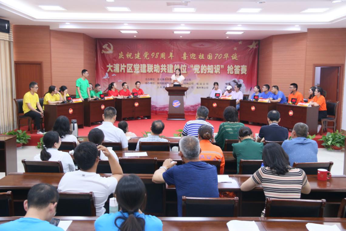 6月29日,大浦片區“16”黨建聯動共建單位再次相聚華茂,聯合舉辦“慶祝建黨98周年,喜迎祖國70華誕”“黨的知識”搶答賽活動,共建單位領導及黨員代表觀看了比賽。