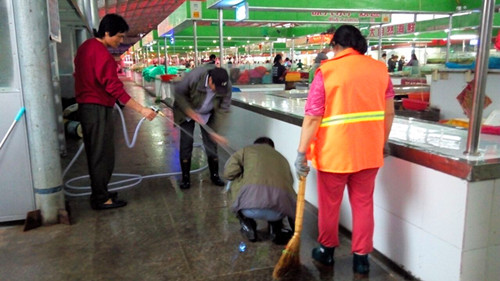 當(dāng)人們歡度國慶佳節(jié)之時,公司巨龍農(nóng)貿(mào)市場全體職工卻是在創(chuàng)衛(wèi)工作現(xiàn)場度過的。