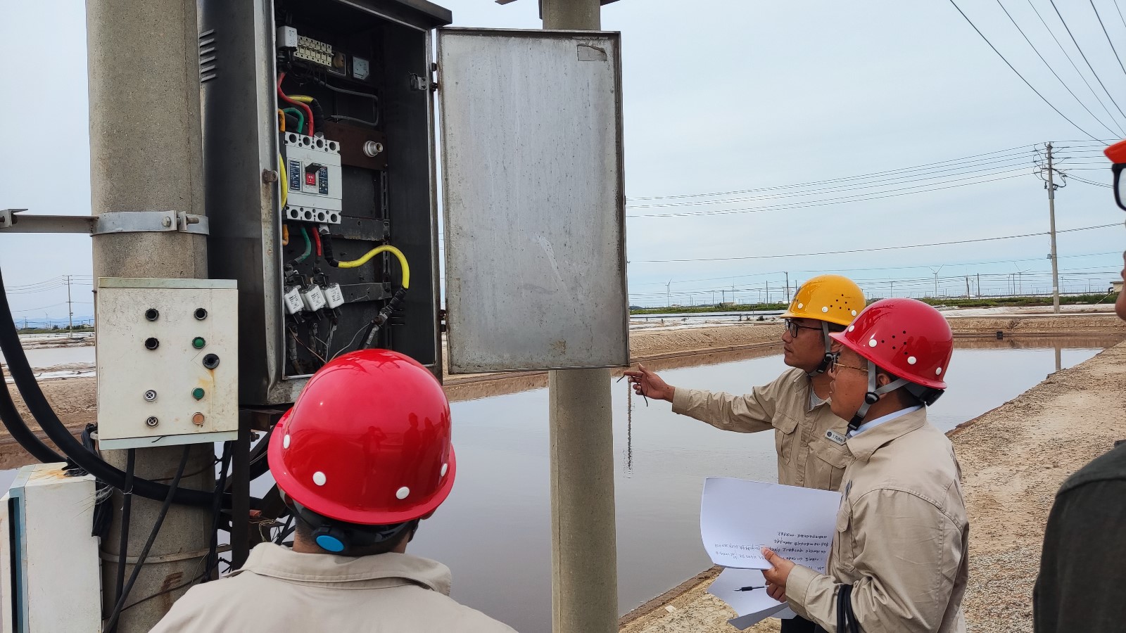 9月27日,“戰斗”正式打響,投資公司聯合供電公司開展日曬制鹽用電線路專項檢查,本次檢查組成主要由投資公司和供電公司領導牽頭,安全部門和電力專家組配合組成;并分成兩組對已“服役”13日曬制鹽線路進行全面體檢,針對檢查中存在的用電設施隱患及用電安全問題,予以記錄并及時落實整改;確保電路設備安全穩定運行。
