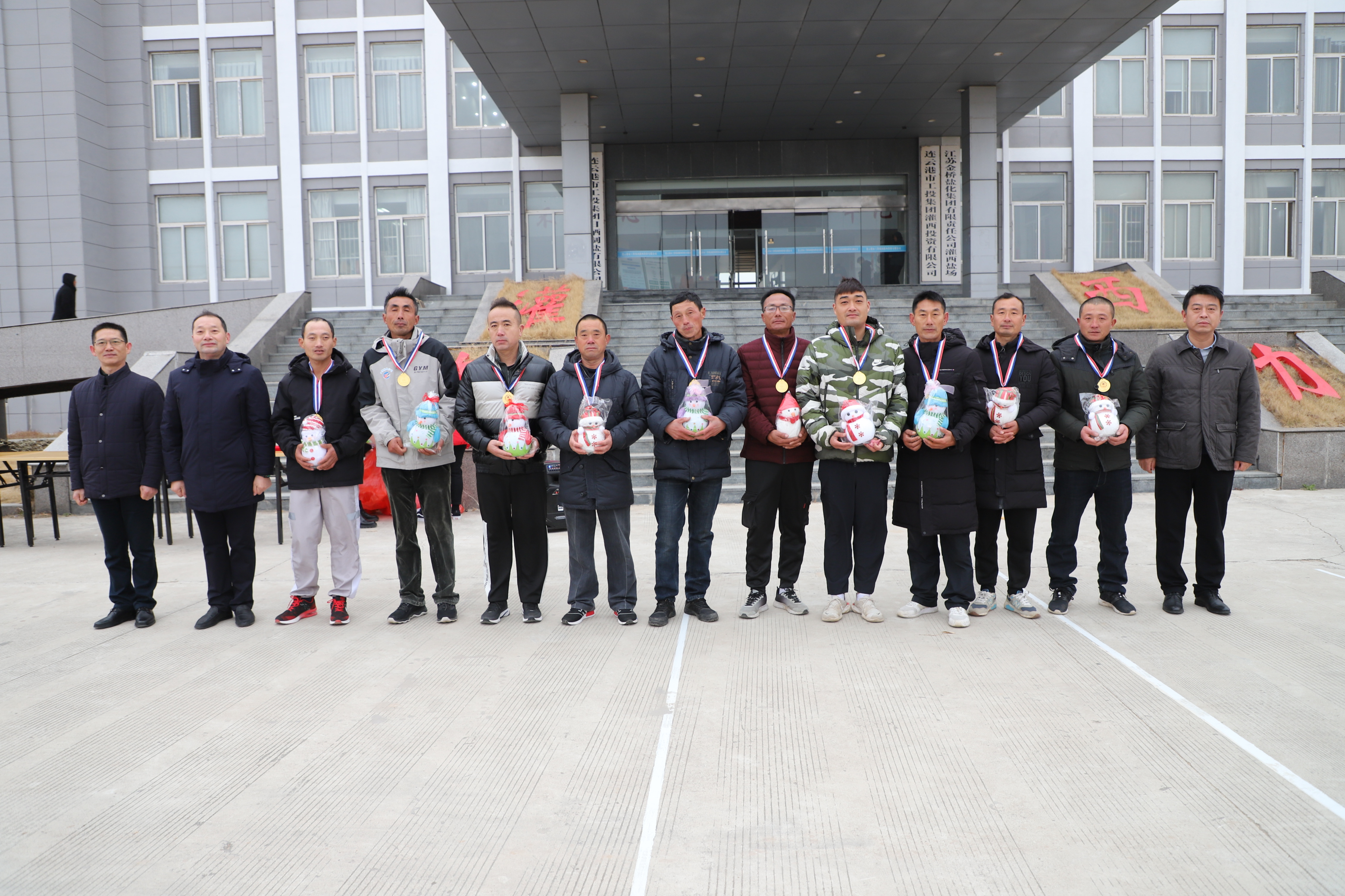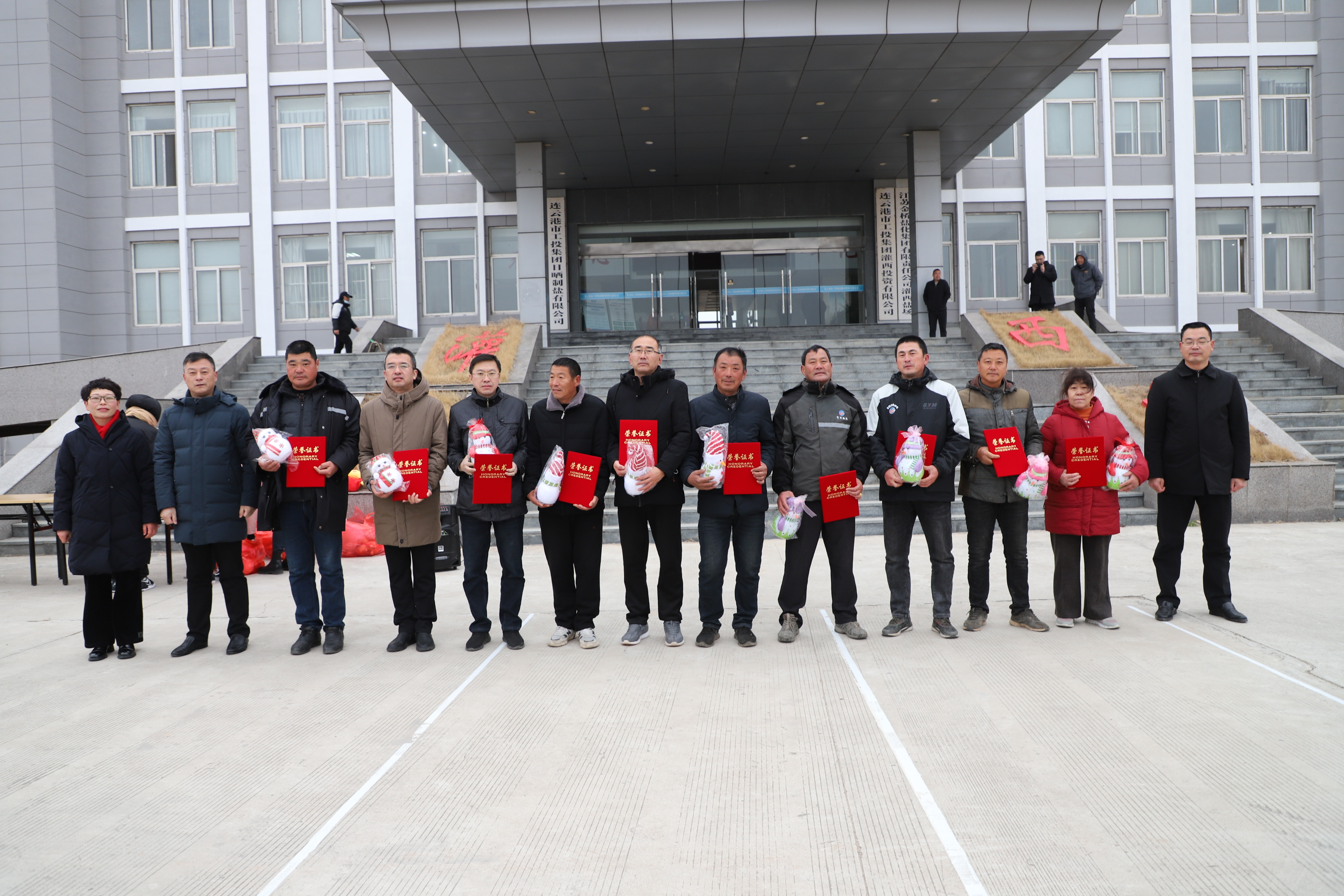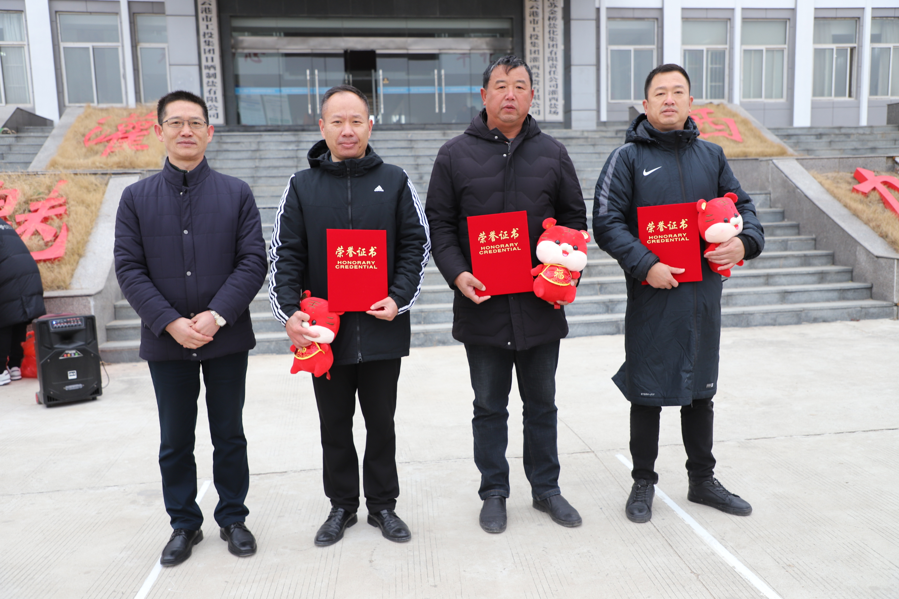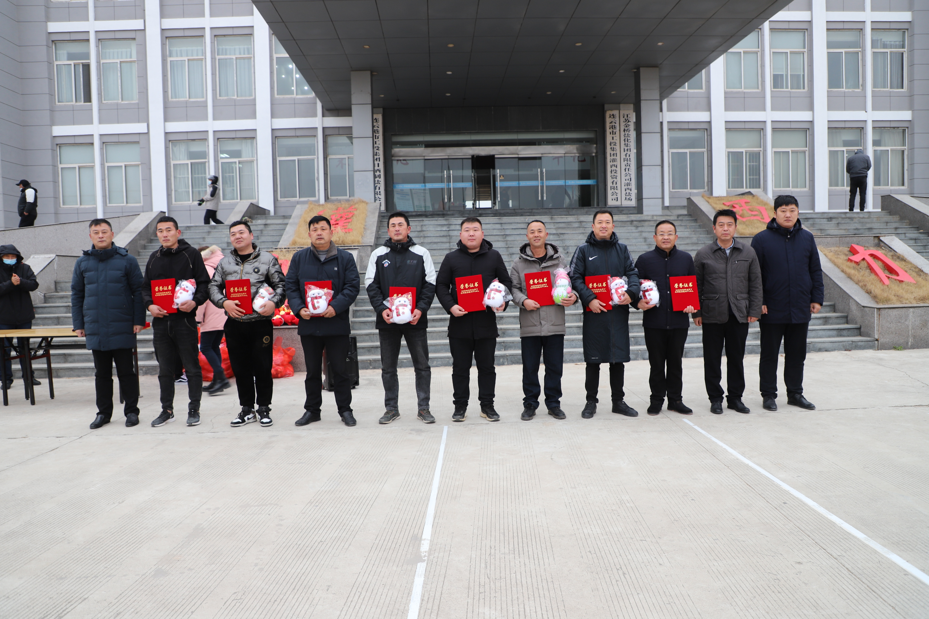 閉幕式上宣布新河制鹽公司、埒南制鹽公司、宵洋物流公司分獲團體一至三名,頒發團體以及個人榮譽證書,為每位獲獎者發放灌西投資公司吉祥物——“鹽寶寶”。(西宣)