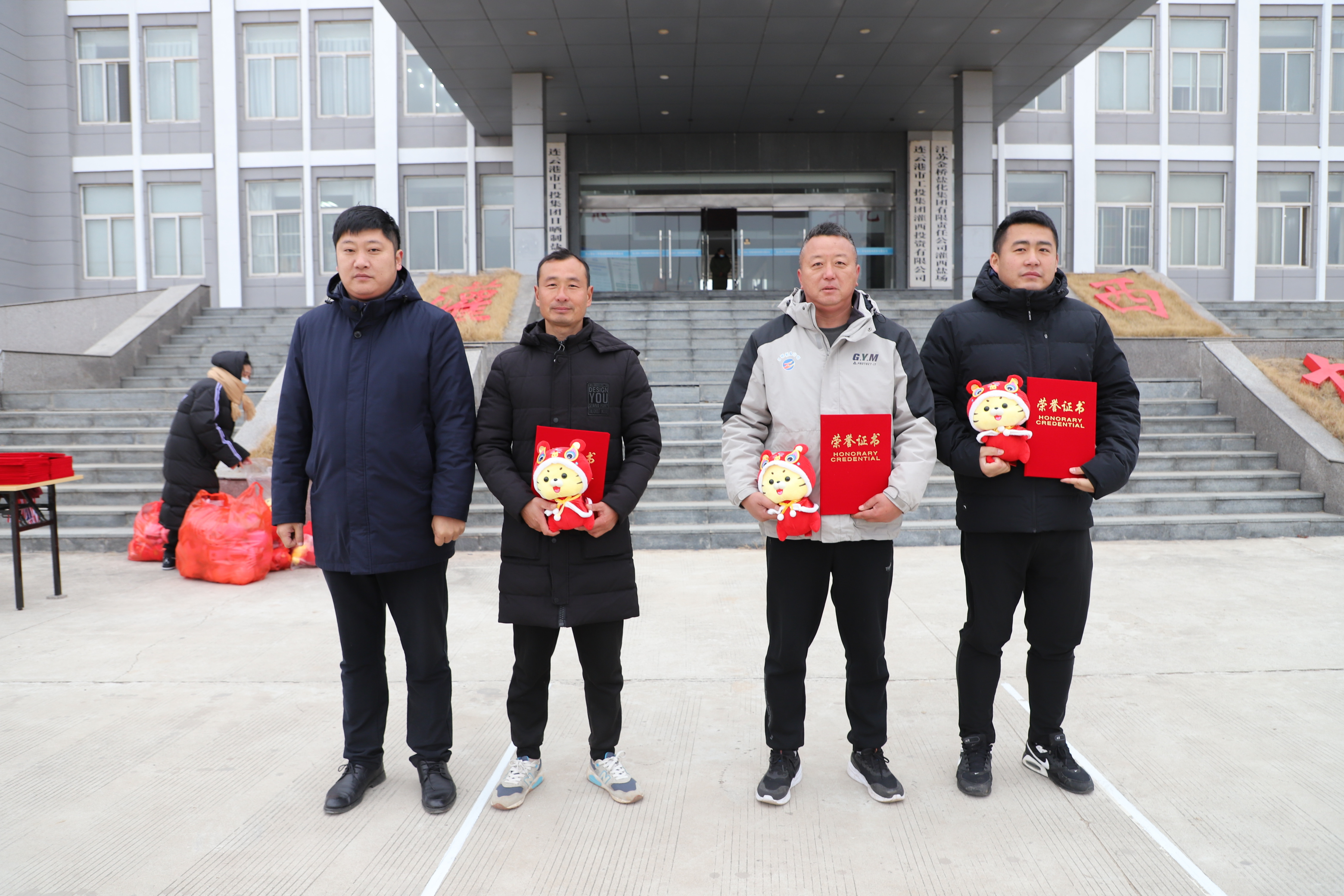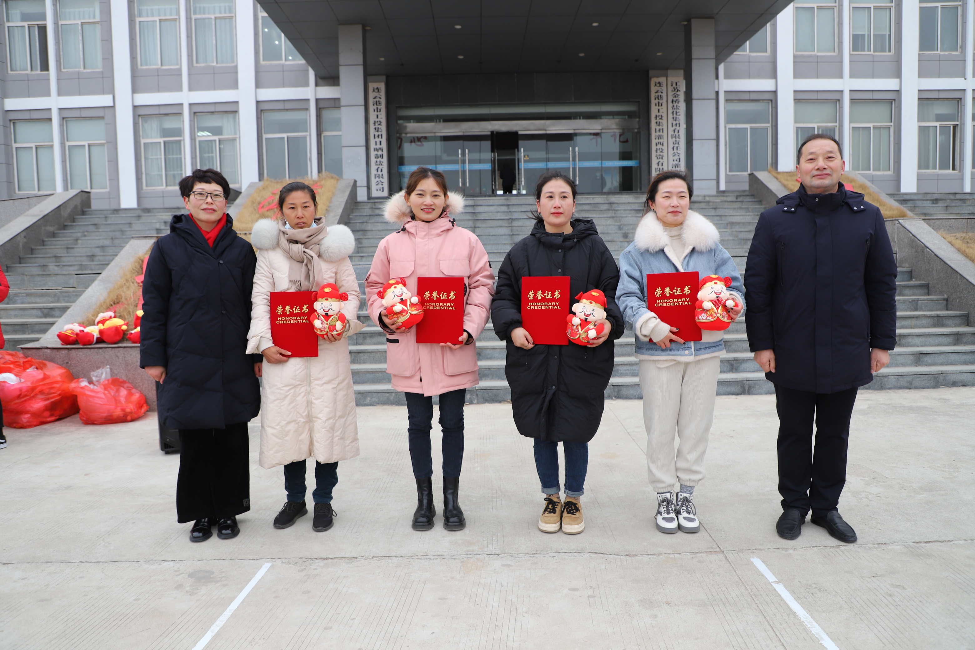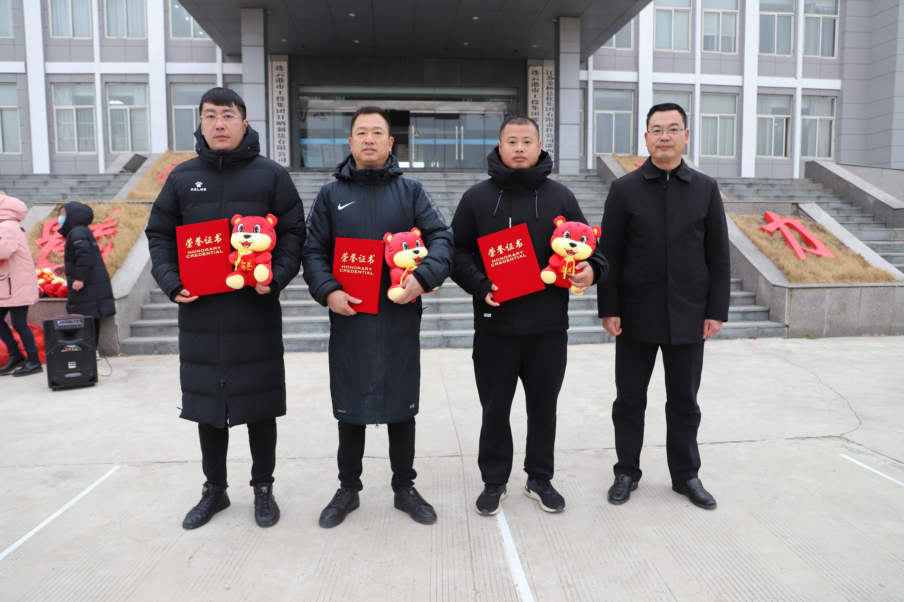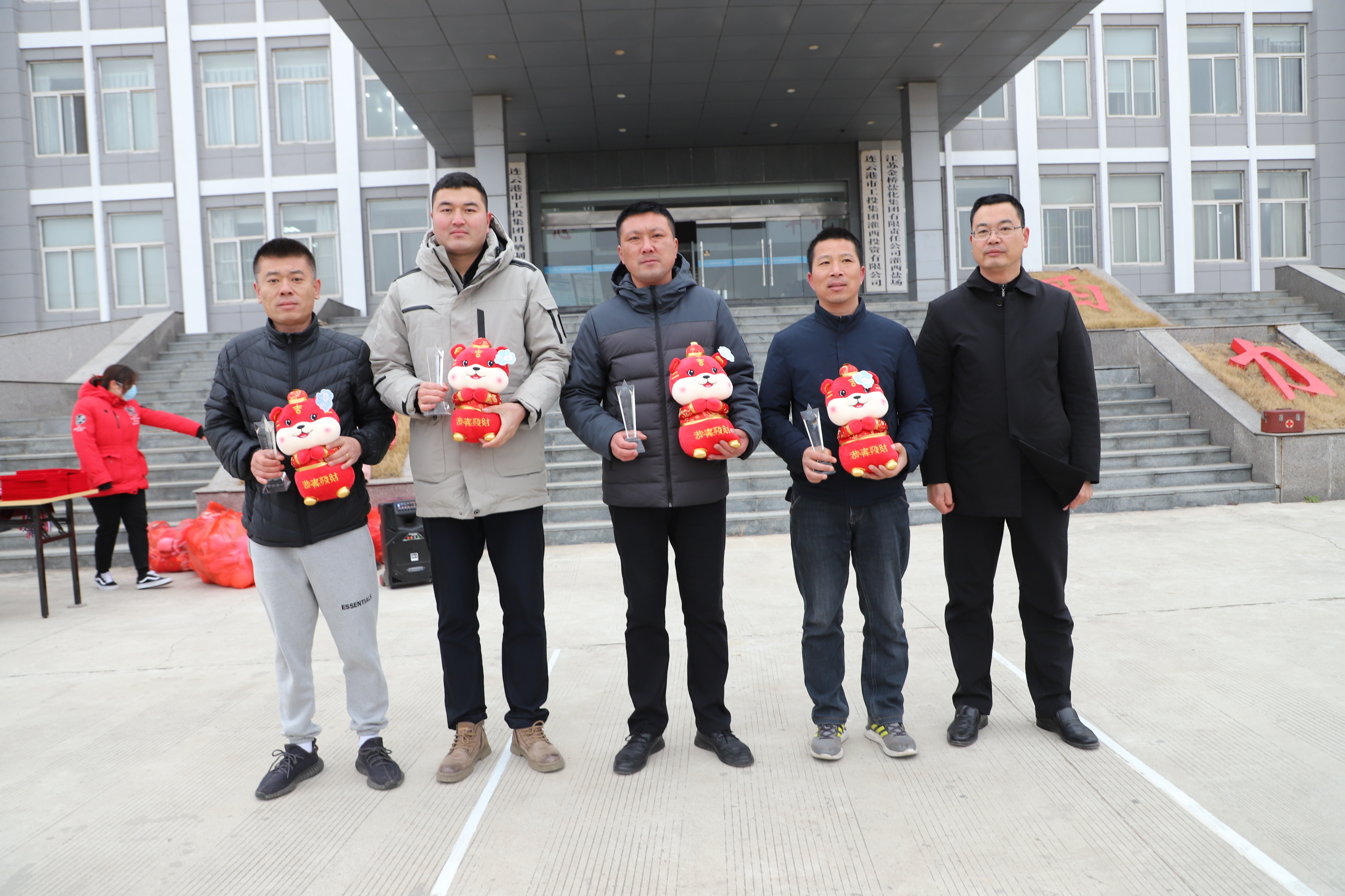 閉幕式上宣布新河制鹽公司、埒南制鹽公司、宵洋物流公司分獲團體一至三名,頒發團體以及個人榮譽證書,為每位獲獎者發放灌西投資公司吉祥物——“鹽寶寶”。(西宣)