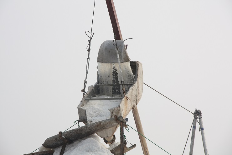 考察組一行先后到日曬制鹽公司扒鹽現場、宵洋物流公司五灌河碼頭以及新龍港原鹽集運現場進行了參觀。在日曬制鹽公司扒鹽現場,陸總一行詳細了解了日曬制鹽的扒鹽過程,對我公司鼓勵開展科技創新、推進小改小革等做法給予了高度評價。在宵洋物流公司五灌河碼頭,考察組一行還對碼頭的用途、年貨物吞吐量以及下一步發展規劃情況進行了仔細了解。