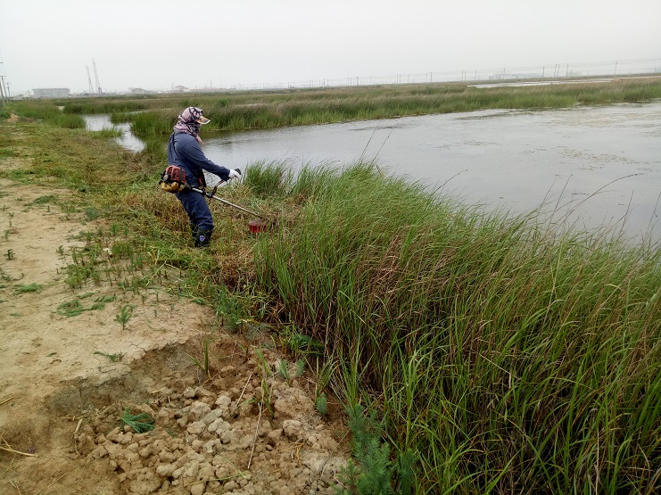近期,實業公司三班做好灘場文明工作。他們不顧近期高溫天氣、利用空閑時間進行灘地除草行動。班組長金立柱,青年員工許麗放棄周末節假日,采用人機相結合的方法,清除三班池埝雜草一千五百余米。(實業公司)