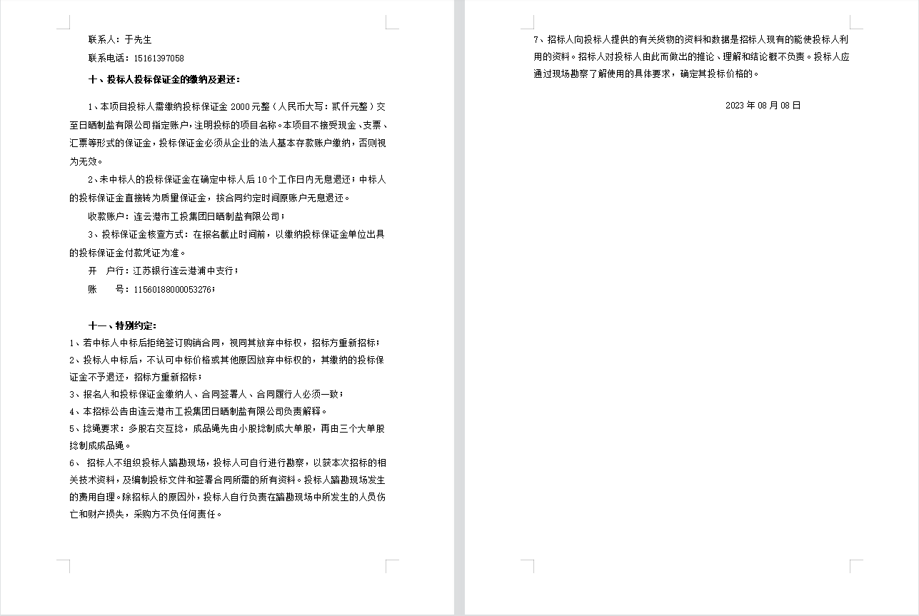 連云港市工投集團日曬制鹽有限公司聚乙烯繩招標(biāo)公告