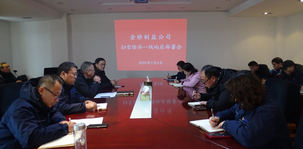 公司副總經理凌家佳傳達了《集團公司氣象災害應對工作提示單》要求。公司黨委書記、董事長、總經理田磊宣讀《公司掃雪除冰事故專項應急預案》,并就啟動掃雪除冰一級響應工作提要求:要提高認識、統籌推進,加強值班值守,切實提高冰雪清除工作的效率和質量;要統一思想、奮力擔當,履行好安全生產責任,全力做好融雪鹽市場保供工作。
