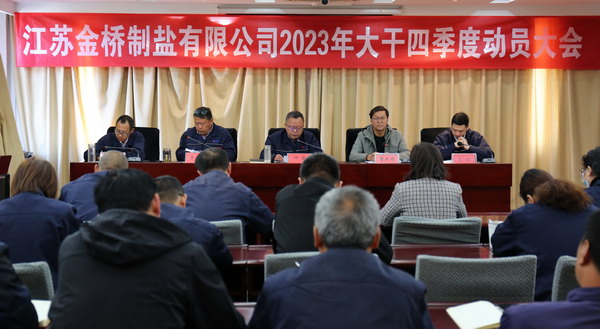會上,加工鹽車間、生產部、包裝鹽車間、銷售部分別作表態發言。(金宣)