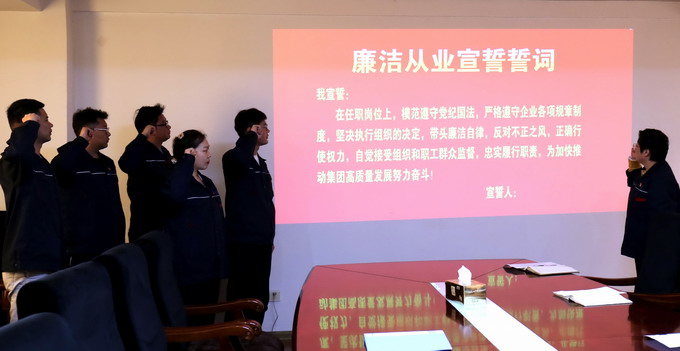 會議傳達了集團紀委《關于扎實開展年輕干部“廉政教育月”活動的通知》文件精神,簽訂了《廉潔承諾書》、發放了《家庭助廉倡議書》和進行廉潔從業宣誓。