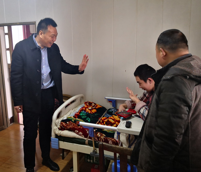 每到一家,公司領導都與他們親切交流、噓寒問暖,詳細了解的生活、身體健康等情況,鼓勵他們要保持樂觀心態,樹立自強自立的信念,努力過上幸福好日子。(黃阿鳳)
