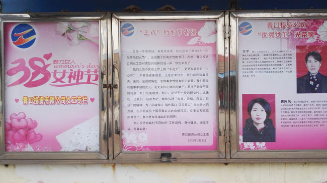 為表彰先進,樹立典型,激發(fā)女工們爭先創(chuàng)優(yōu)的意識, “三八”節(jié)前夕,青口公司女工委開展了“優(yōu)秀女工”評選活動,對評選出來的優(yōu)秀女工加大了宣傳力度,并增設(shè)“三八”節(jié)櫥窗專欄,大力宣揚公司先進女工事跡。