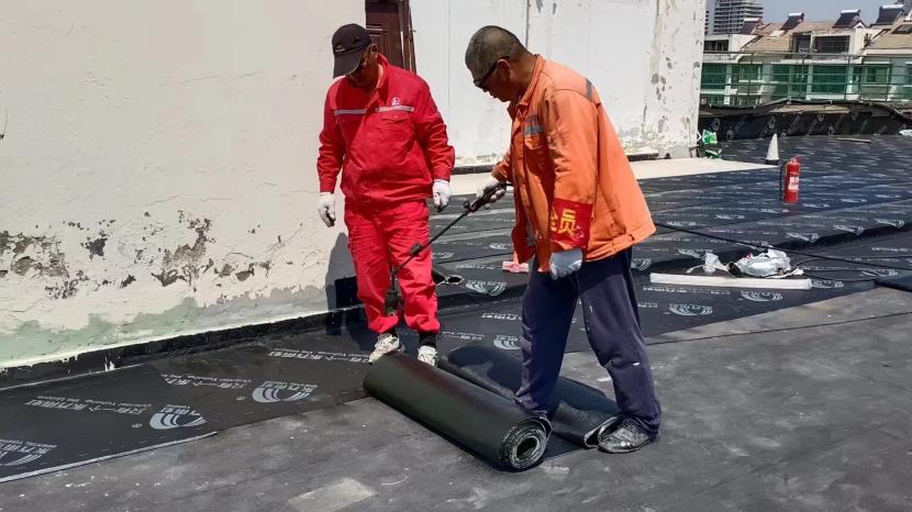 在昌圩湖大酒店樓頂防水工程施工現(xiàn)場,因屋面漏水嚴(yán)重影響酒店日常經(jīng)營。為了趕在雨季來臨之前完成全屋面防水工程,節(jié)日期間,有著“臺(tái)北防水第一人”稱號(hào)的丁祥生班長帶領(lǐng)班組成員連日奮戰(zhàn)在施工現(xiàn)場。隨著噴槍烘烤著雨虹防水卷材,一米米的鋪設(shè)前進(jìn)不斷縮短著距離。
