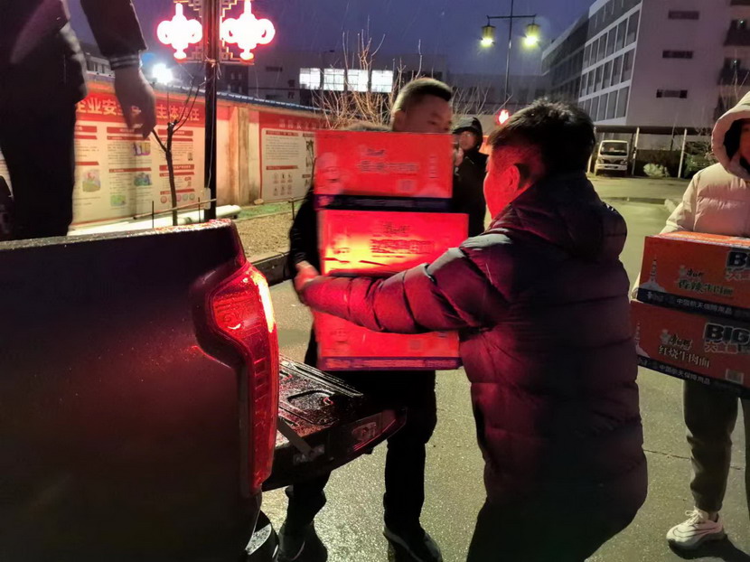 夜間,工會主席傅健一行現(xiàn)場看望慰問清除冰雪戶外工作人員,為他們送上方便面等慰問物資,并囑咐他們在辛勤工作的同時做好防寒保暖、安全防護。為在冰天雪地中堅持工作的一線工人送去了溫暖和關(guān)懷。