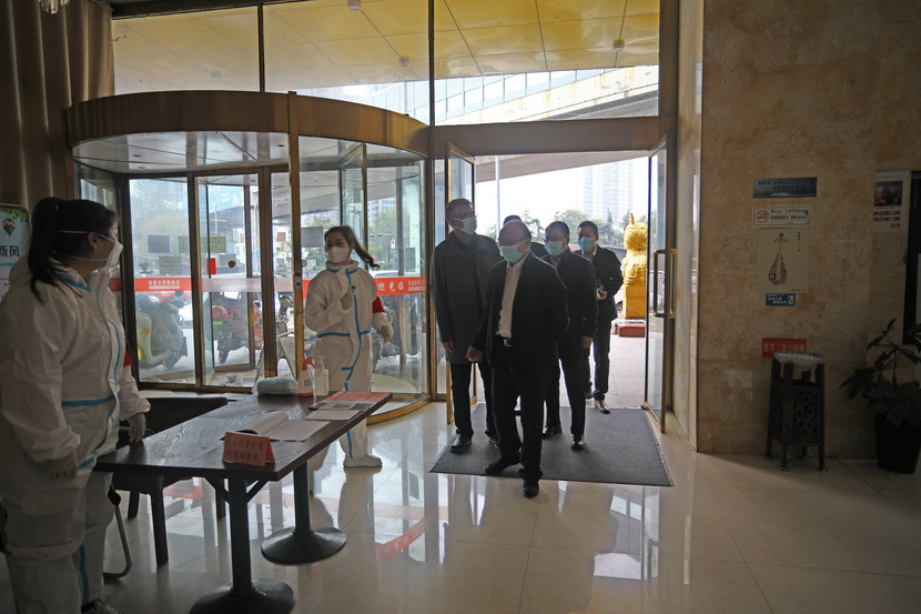 進(jìn)入辦公區(qū)后,丁銳一行對臨時辦公區(qū)的辦公氛圍表示贊賞,各部門門牌張貼到位,管理制度上墻,特別是疫情防控制度全面到位。同時隨機來到工作人員宿舍,檢查了內(nèi)衛(wèi),對工作人員表示了慰問。