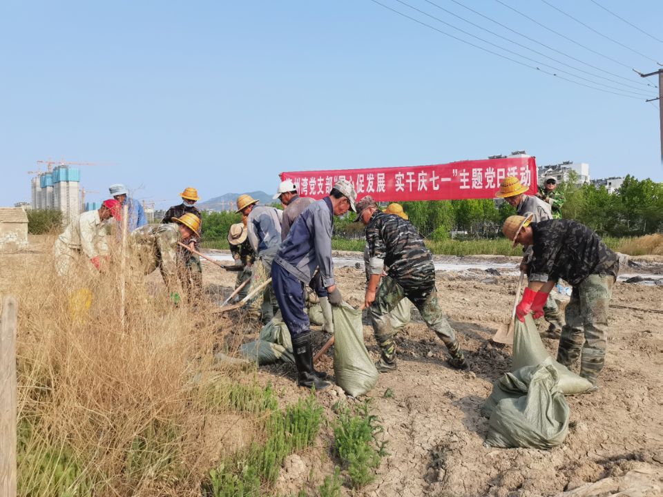 ? ? 在七·一來臨之際,為了不斷增強黨支部的凝聚力和戰斗力,更好的發揮黨員先鋒模范作用,保持共產黨員先進性,激發廣大黨員干事創業、創先爭優的熱情,6月20日下午,海州灣黨支部在先鋒班組開展“同心促發展、實干慶七一”主題黨日活動。