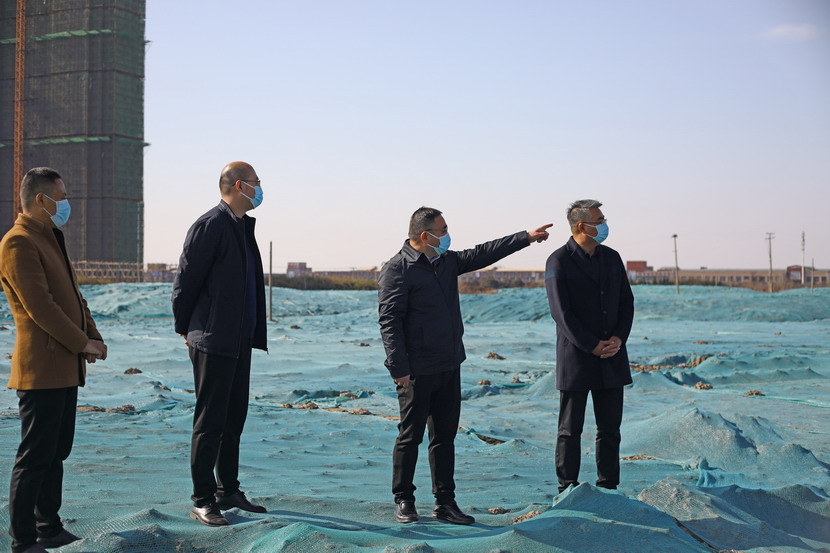 楊龍董事長一行首先檢查貨場道路和地面硬化情況,然后對未用地塊裸土苫蓋情況進行現場督察。