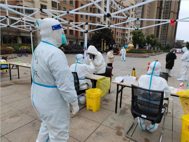 315,公司緊急發通知,需要一名志愿者進駐同科志愿服務。與以往志愿服務性質不同的是,這次要24小時駐扎在同科,晚上也只能睡臨時搭建的帳篷。劉林,作為公司年齡最小的員工,卻在第一時間自告奮勇的報名。志愿服務的第一天,劉林先學習穿脫防護服、鞋套,然后協助工作人員采集信息、檢查健康碼、維持現場秩序、解答居民的各種問題。這樣的工作,從早晨一直持續到晚上。簡單吃完晚飯,緊接著是補錄綠碼人員。等所有工作結束,再進行周圍環境的全面消殺工作。防護服一穿就是一整天,每每脫下時,已是皮膚發皺、衣服濕透,面屏里泛滿水珠……已經連續工作2天的劉林說,“累,但我們必勝,堅持就是勝利!”