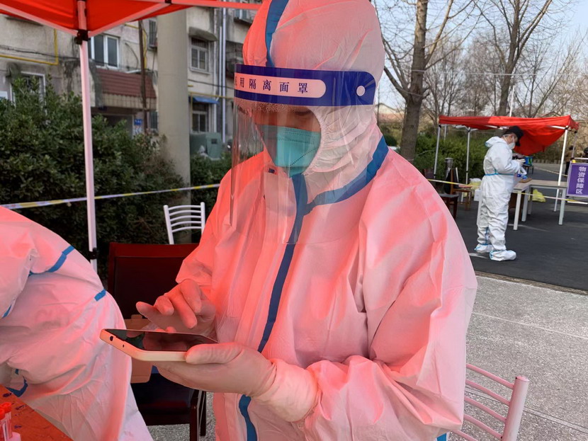 ▲ 海州區幸福路街道防疫主力隊員—秦英