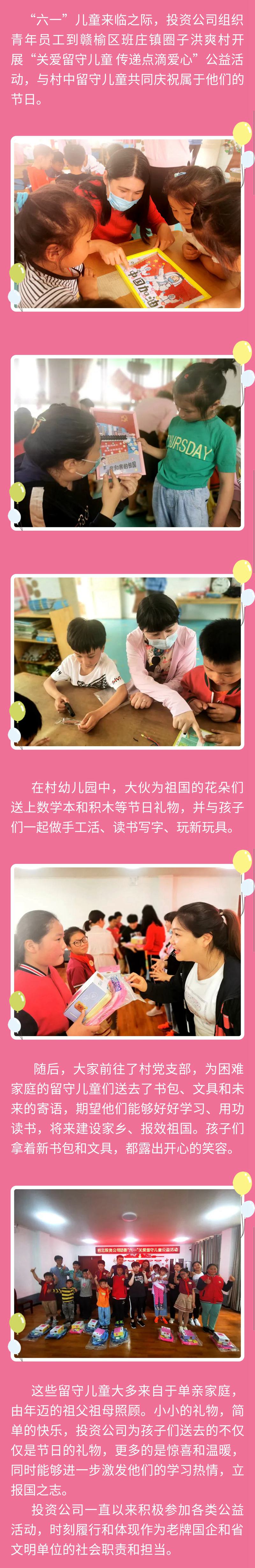 投資公司開(kāi)展“關(guān)愛(ài)留守兒童 傳遞點(diǎn)滴愛(ài)心”公益活動(dòng)