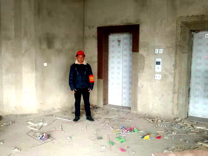 現場多次有人提出邀請王愛軍等兩位同志吃飯喝酒,都被他們嚴詞拒絕。帶著一塊面包一根火腿腸,他倆像釘子一樣釘在電梯廳。“扯著雞毛當令箭”的風言冷語不停傳來,他們執行任務的決心不動搖,輪流換班,也不讓電梯違規使用。保障二號樓安全施工,他們就是硬漢守門員。