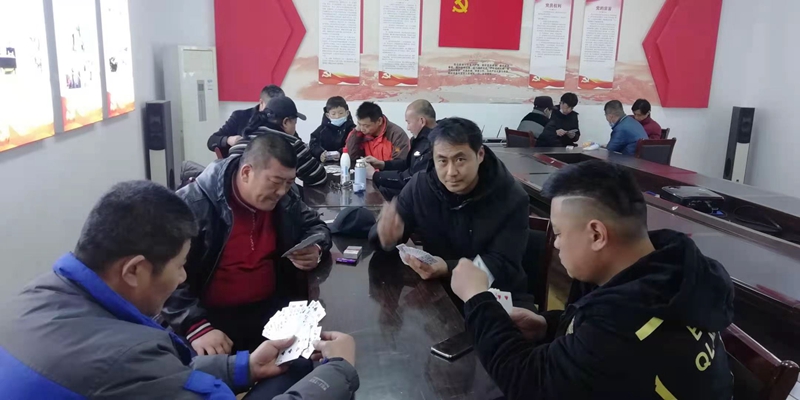 接下來是摜蛋撲克賽,大家按自由配對分組競賽,各路選手認真看牌,默契配合,充分施展自己的牌技,對陣雙方斗智斗勇,比牌技、比智慧,賽成績、賽友誼。但無論勝負,大家仍然喜笑顏開,一片其樂融融......