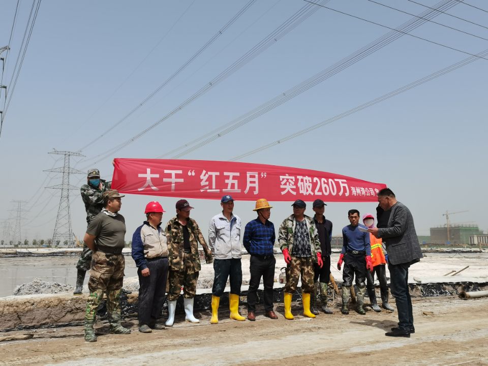 58日上午,海州灣公司在扒鹽現場,利用搶修扒鹽機械的間隙,組織當班職工迅速傳達了投資公司“大干紅五月,再創新佳績”動員大會會議精神,積極宣貫投資公司政策和鹽鈣產業當前面臨的嚴峻形勢,并制定公司大干紅五月小指標勞動競賽方案,開展職工勞動技能大比武,明確公司五月份經濟指標,動員全員要團結奮進,樹立榮辱與共的集體榮譽感,進一步凝聚奮進力量,提升干群士氣,全力沖刺五月份扒鹽10000噸、排鹵60000方、實現營業收入260萬元的經濟目標,掀起大干紅五月的熱潮,營造齊心協力、大干快干的良好局面。