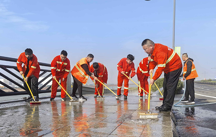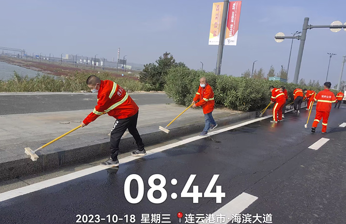 10月18日上午,悅升公司機(jī)關(guān)管理人員深入一線對(duì)海濱大道南卡口至疏港大道路段及橋梁路緣石進(jìn)行強(qiáng)化清洗,用實(shí)干打好賽道保障“戰(zhàn)役”。工作現(xiàn)場(chǎng),一臺(tái)高壓沖洗車先行對(duì)賽道路緣石和橋梁輔道進(jìn)行高壓沖洗,隨后,工作人員一字排開,用毛刷不斷擦洗地面頑固臟污,大家斗志昂揚(yáng)、步步推進(jìn),做到?jīng)_洗無(wú)漏洗、無(wú)死角,最后再用灑水車清洗一遍。經(jīng)過(guò)近三小時(shí)清洗,高標(biāo)準(zhǔn)完成路源石和橋梁輔道保潔清洗工作,有效提高了賽道潔凈度。截至目前,已完成該路段2000多米路緣石清洗工作。